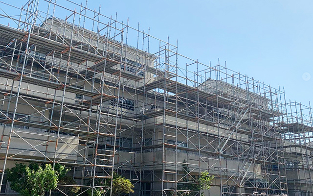 足場工事は、建築物や構造物の外側や内側に一時的な支援構造を設置することです。